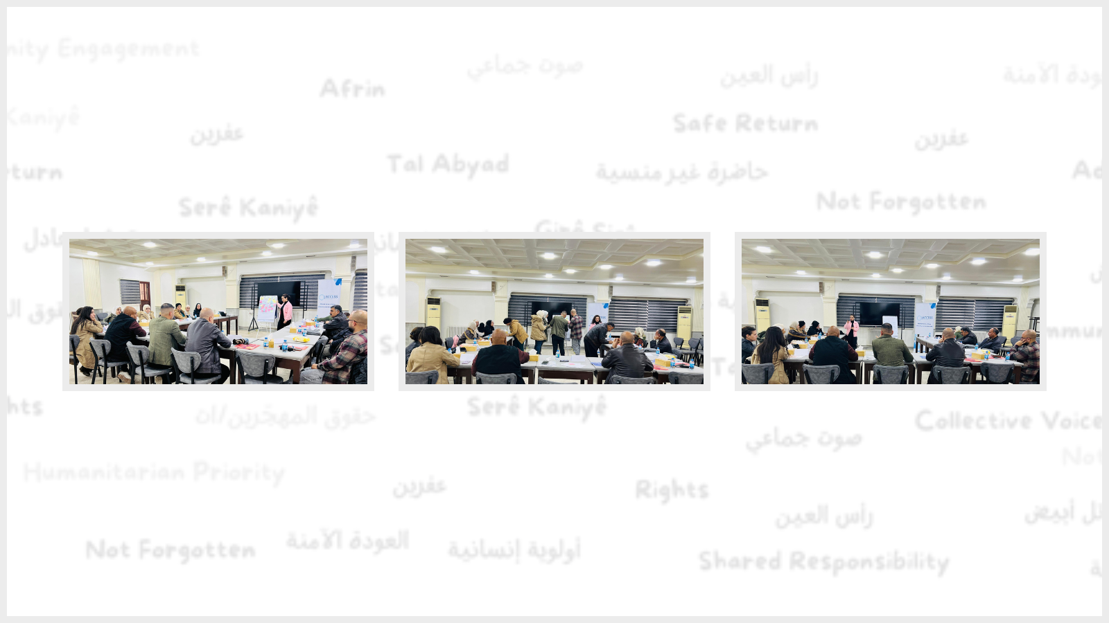 تشكل مخرجات هذا التقرير حصيلة مسار مجتمعي تشاركي أتاح للمهجّرين والمهجّرات قسرياً من عفرين، رأس العين/سري كانيه، وتل أبيض/كري سبي، التعبير عن قضاياهم/ن ومطالبهم/ن بصوت جماعي واضح، انطلاقاً من تجاربهم/ن المعيشة وواقع التهجير المستمر الذي لم يعد حدثاً عابراً أو مرحلة مؤقتة، بل تحوّل إلى واقع طويل الأمد تتراكم آثاره الاقتصادية والاجتماعية والنفسية مع مرور الوقت.